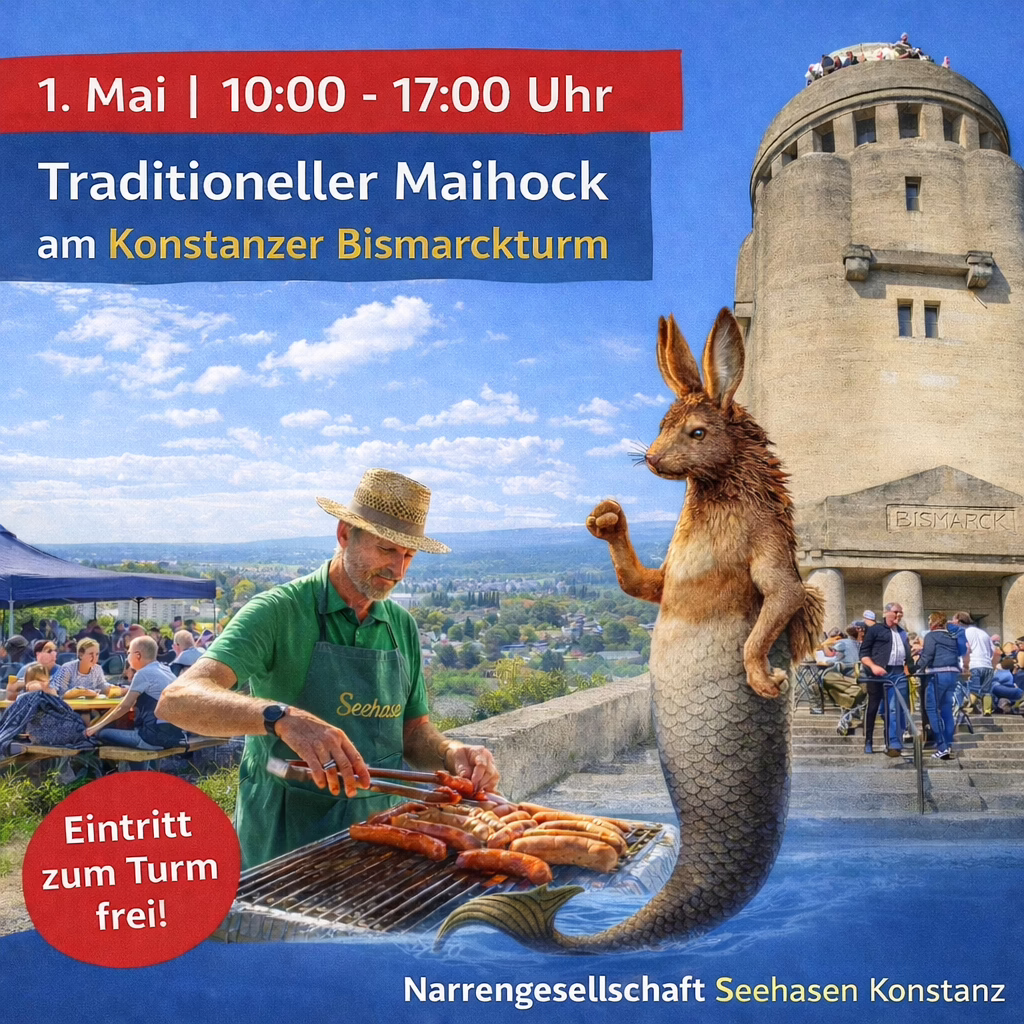 Wir sind nicht nur zur Fasnet unterwegs, sondern das ganze Jahr über. Zum Beispiel öffnen wir regelmäßig die Aussichtsplattform des Bismarckturms für euch (unser Vereinsheim) oder bewirten euch beim Weinfest Konstanz sowie am ersten Mai und dritten Oktober am Bismarckturm.